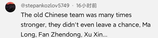有的外国网友说现在的中国乒乓球队不如老一代强大,我觉得现在下这个结论还太早,因为目前正处于一个过渡阶段。我认为只要过渡得好,中国乒乓球队依旧能够保持强大。当然,我不是说这是必然的,因为对手也在进步。